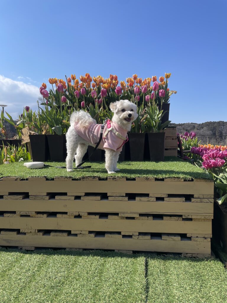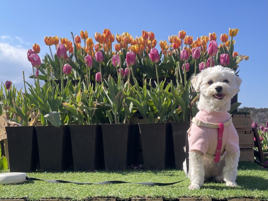 写真の様な可愛いチューリップのフォトスポットがあったり、湖があったりと非日常のお散歩を満喫できました。